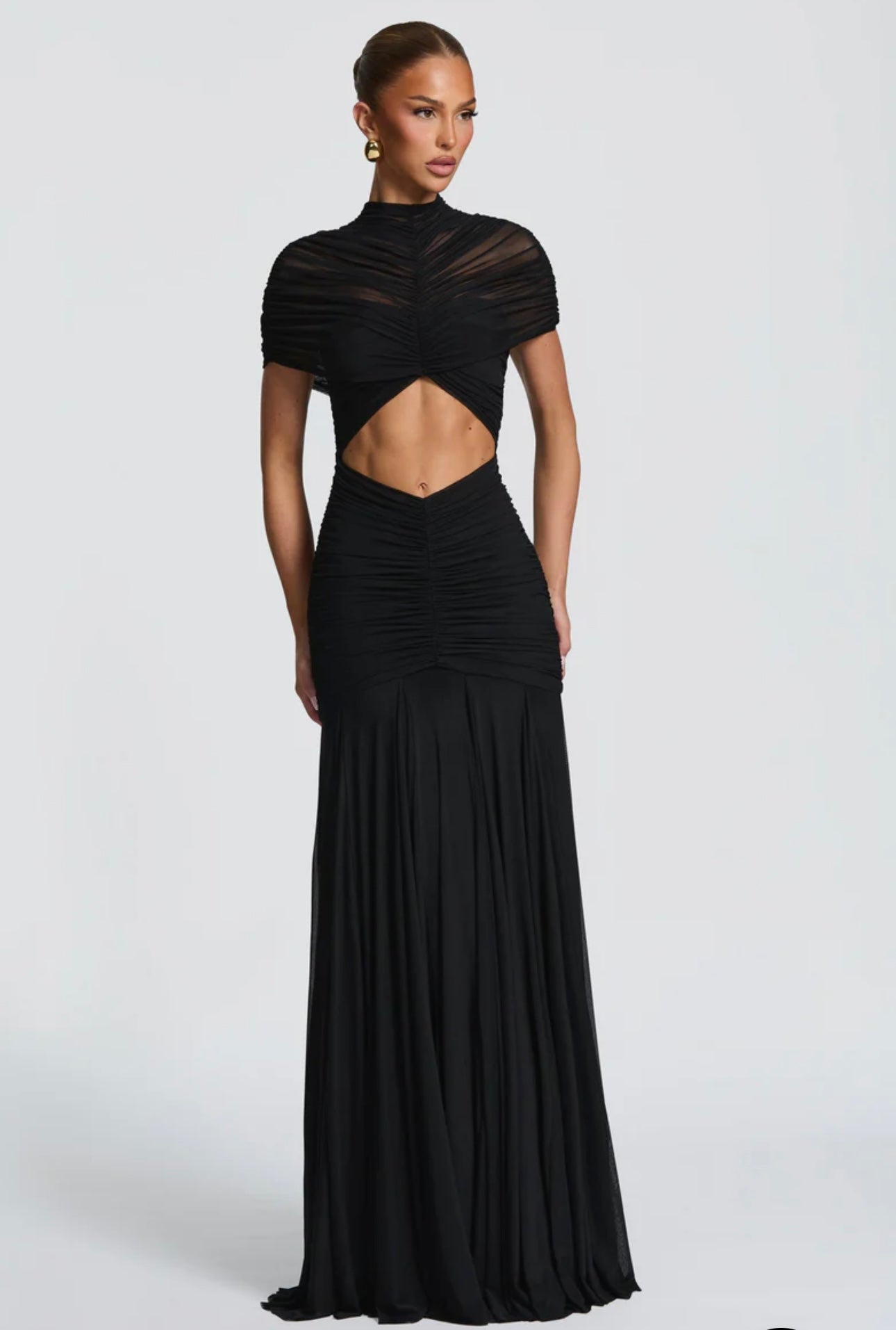 Abito Martina lungo elegante realizzato in tessuto leggero e drappeggiato che valorizza la silhouette. Design sofisticato con top incrociato effetto cut-out e gonna fluida a sirena.