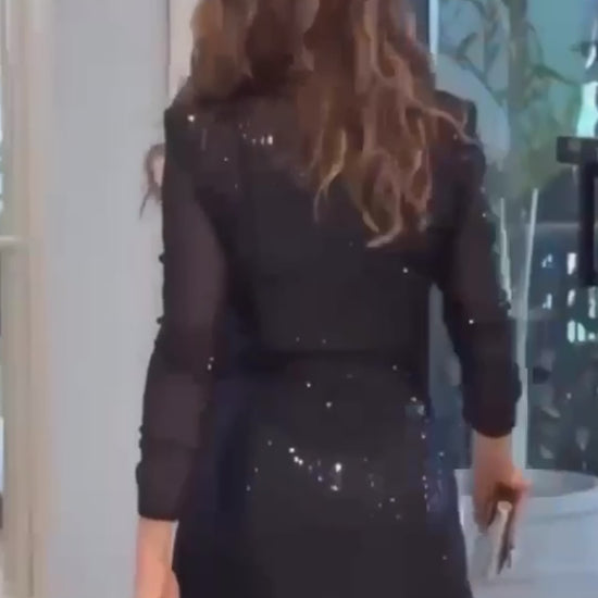 Blazer vestito Eleonora manica lunga in paillettes con cinta in coordinato