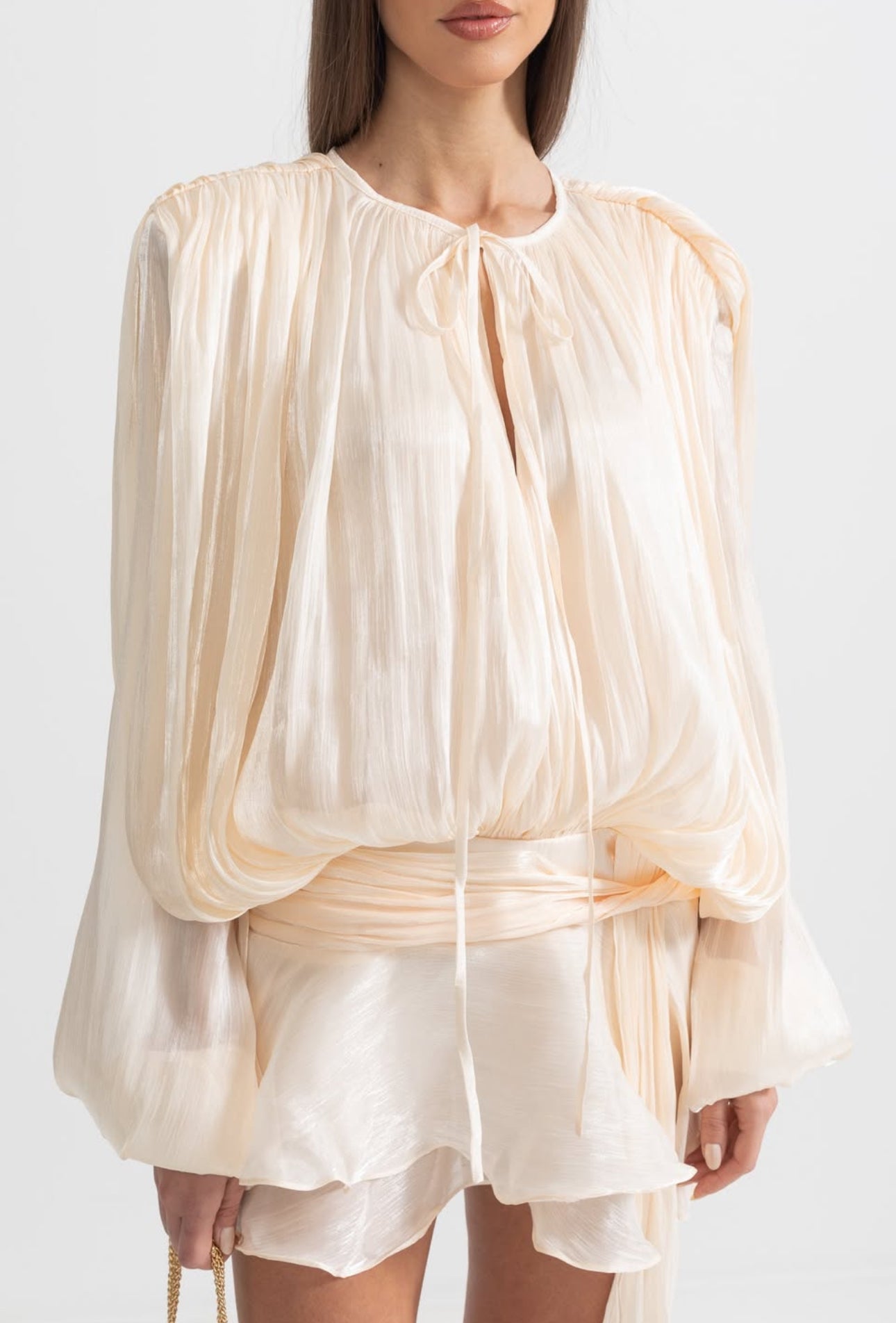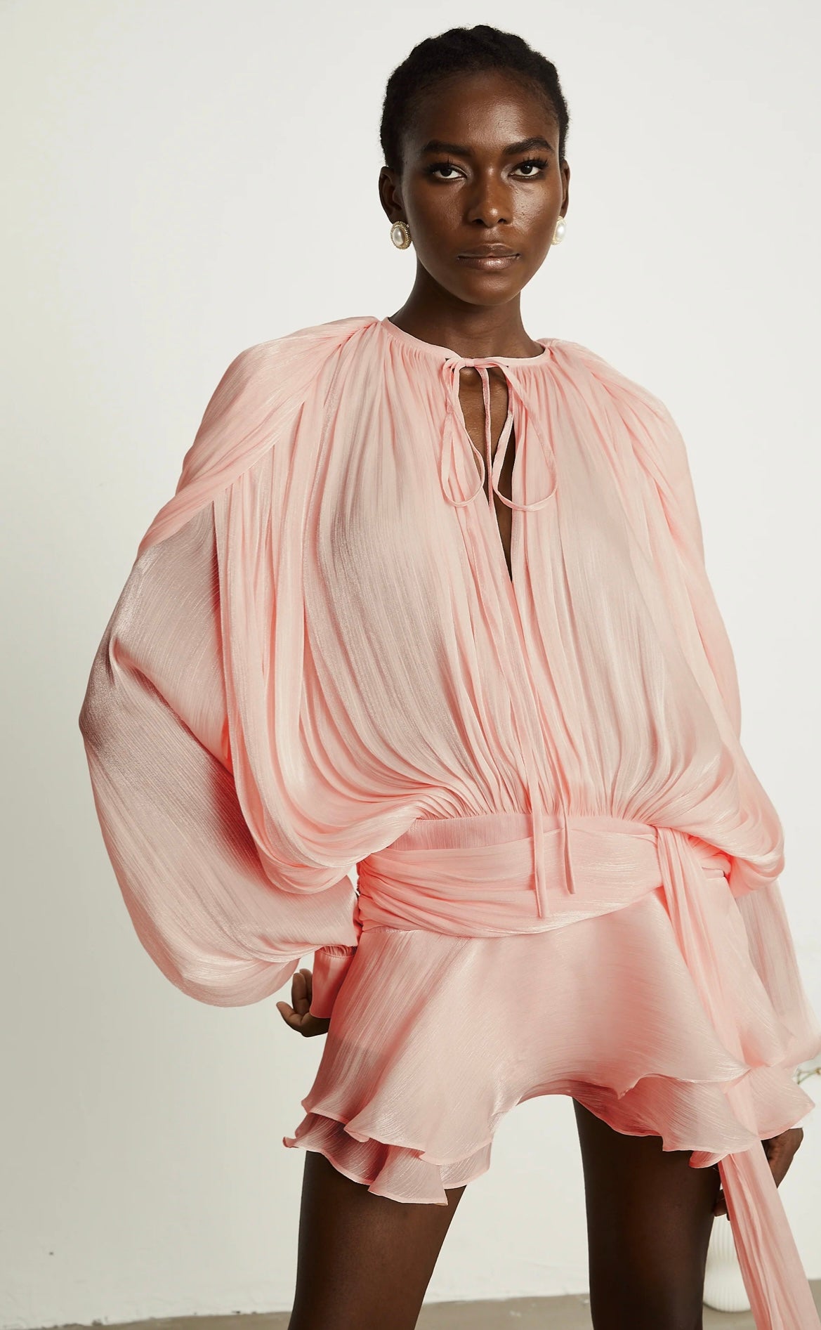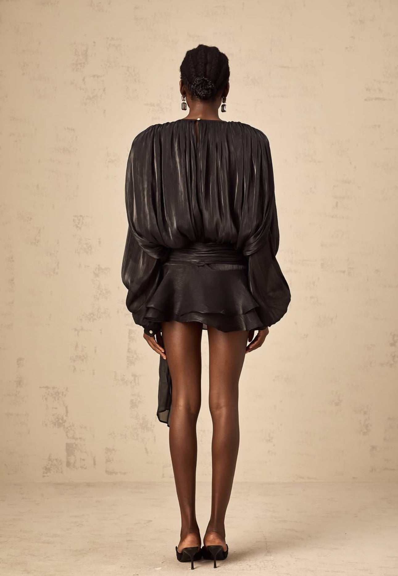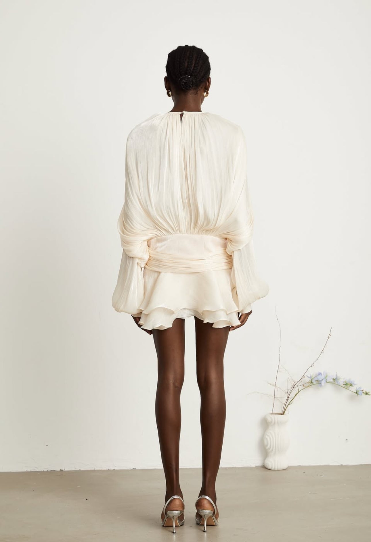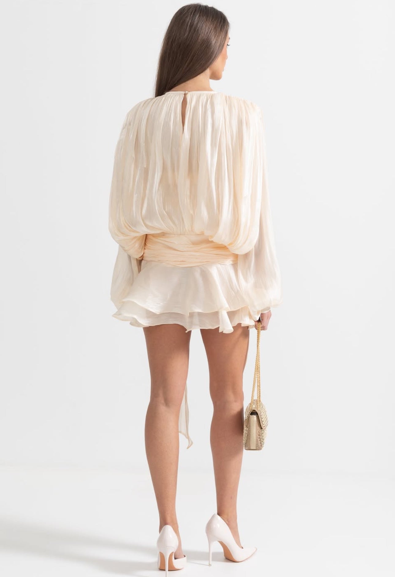 Mini dress CHARLOTTE in dettaglio plissettato su tutto l’abito, manica a sbuffo, elastico sul retro, spallina interna piu pantaloncino non fartelo scappare