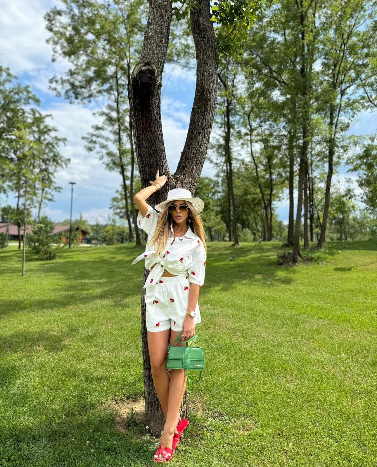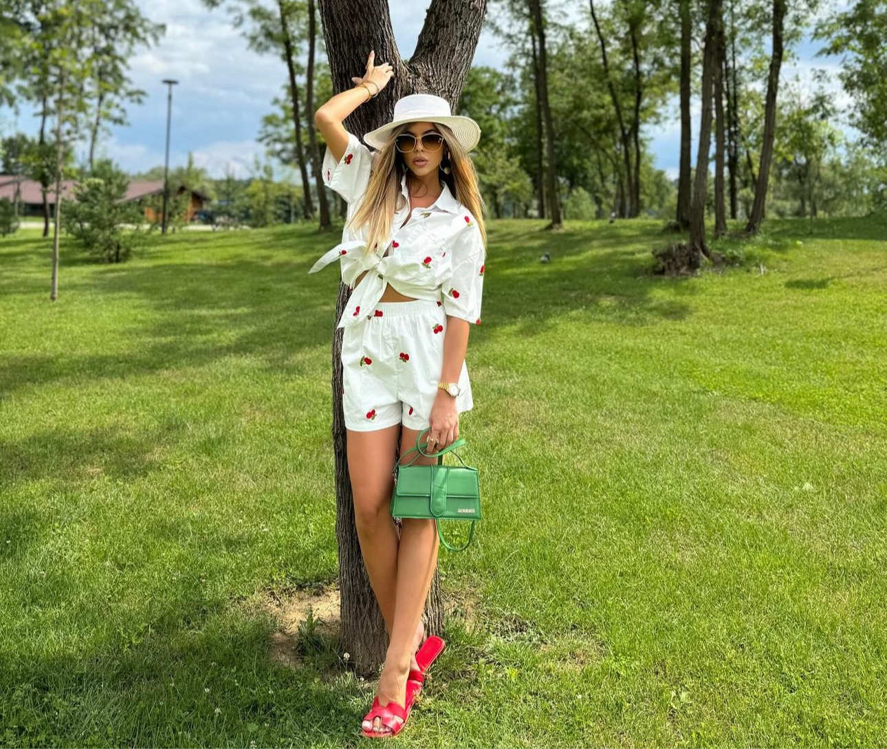 Esplora l'estate con il set Annalisa! Camicia e pantaloncini con fantasie di ciliegie coordinati, perfetti per ogni occasione. Tessuti di alta qualitร e design elegante, per un look unico e versatile. Goditi il 100% di comfort e stile con questo set eccezionale. Ordina ora per un look fruttato e raffinato.