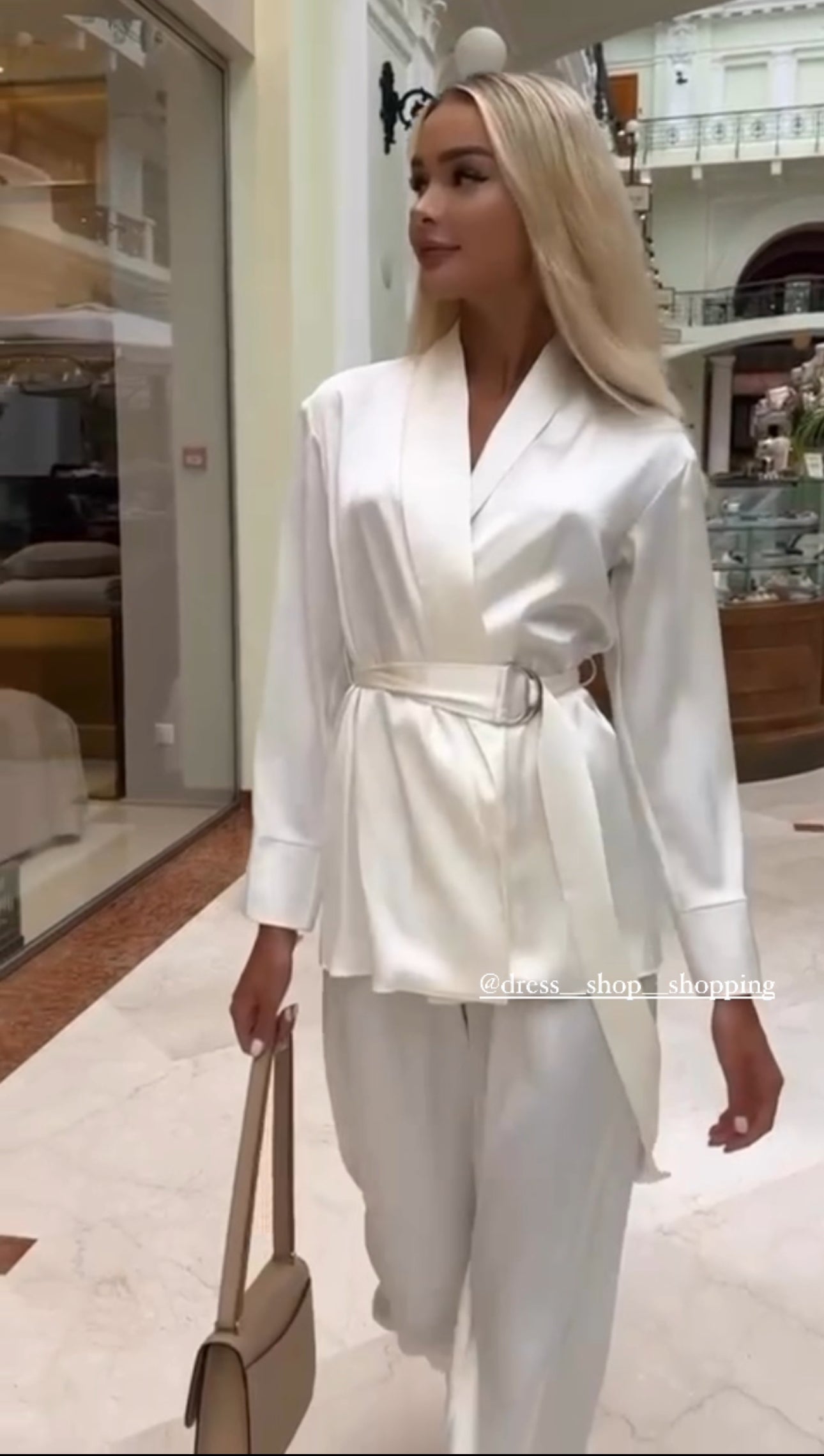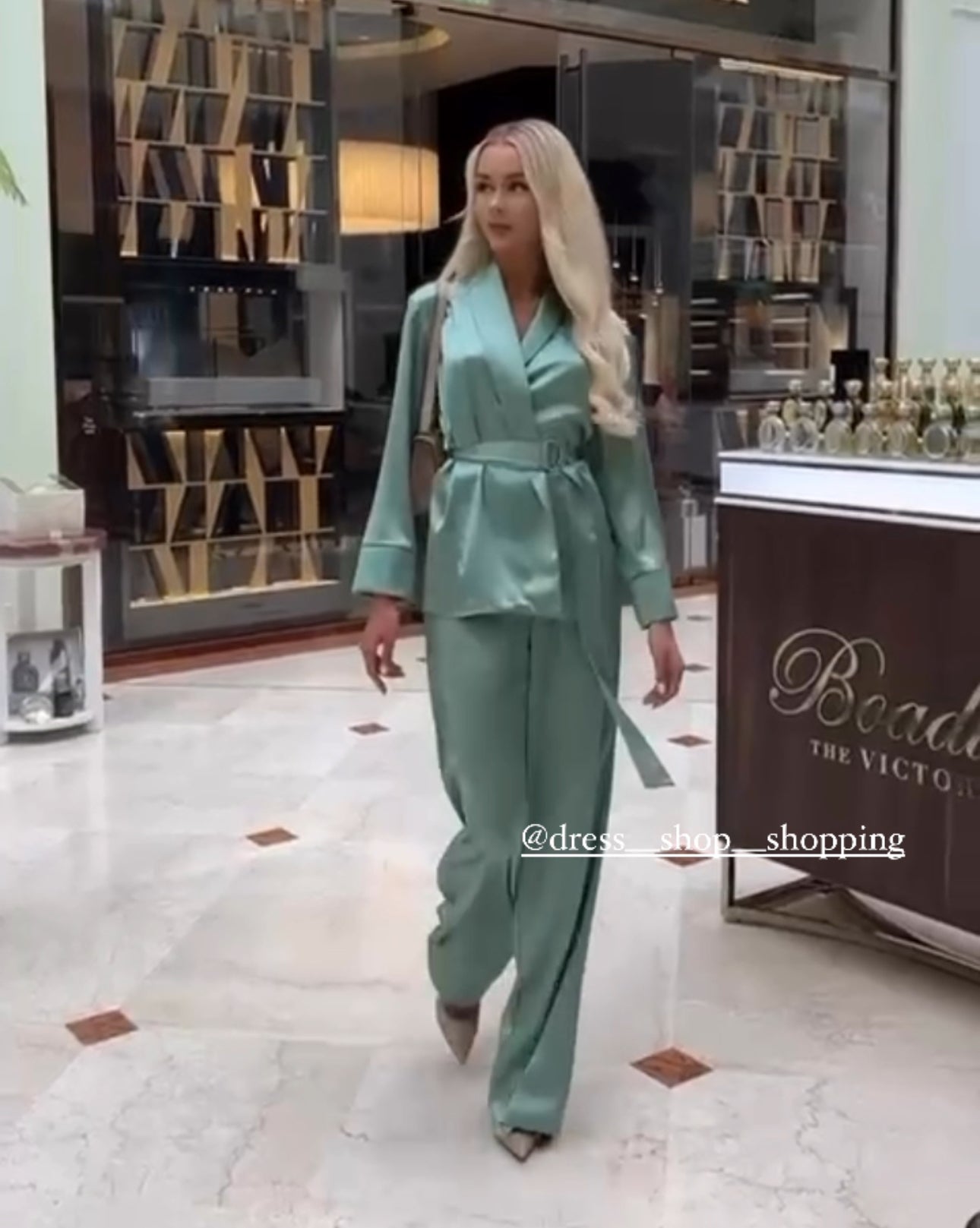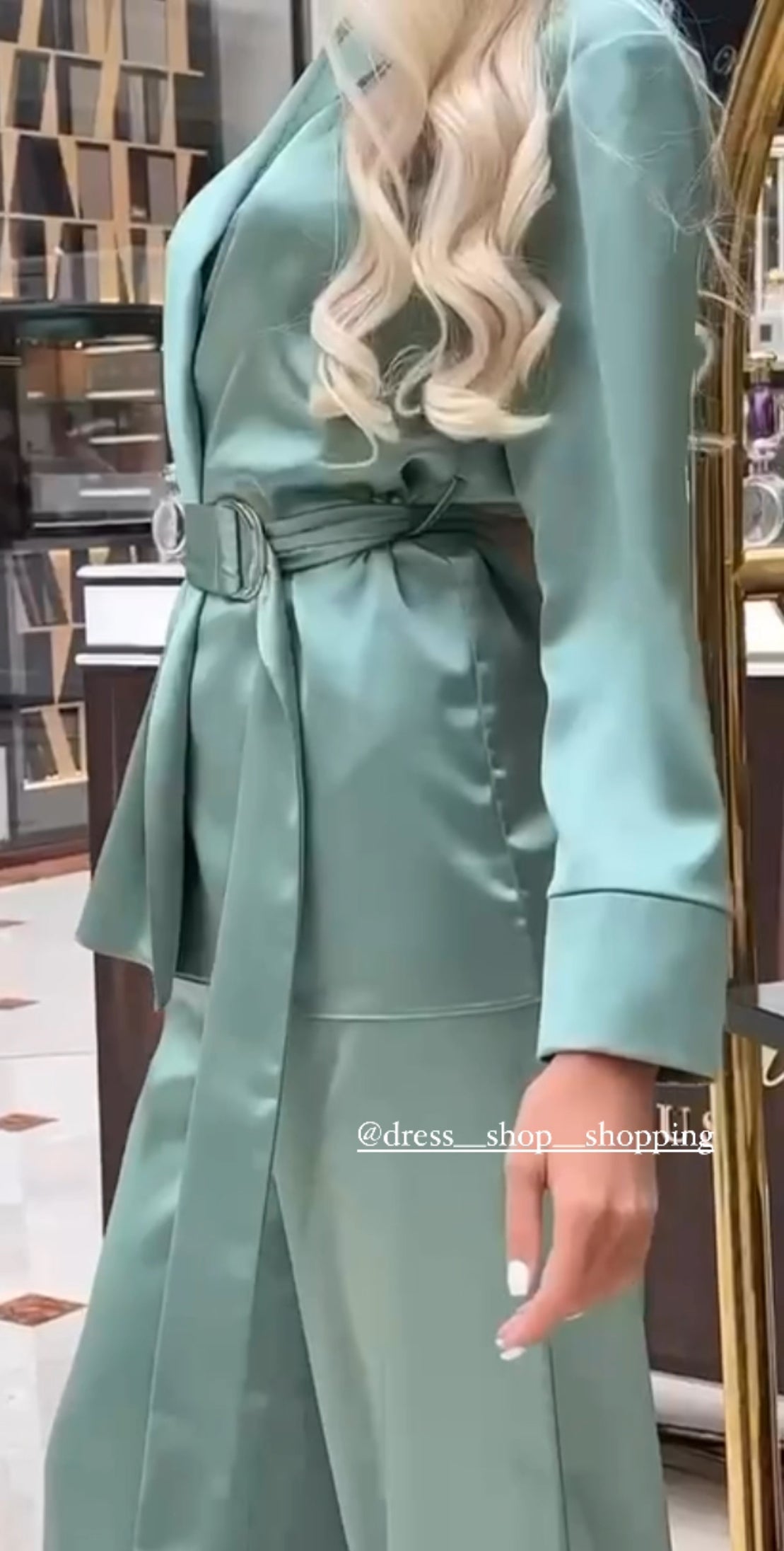 Realizzato in pregiato raso, questo tailleur è impreziosito da una elegante cinta con fibbia argento. Comodo e sofisticato, ideale per rendere sofisticata la tua giornata lavorativa o per un'occasione speciale. Riesce a mettere in risalto la tua figura in modo elegante e discreto.