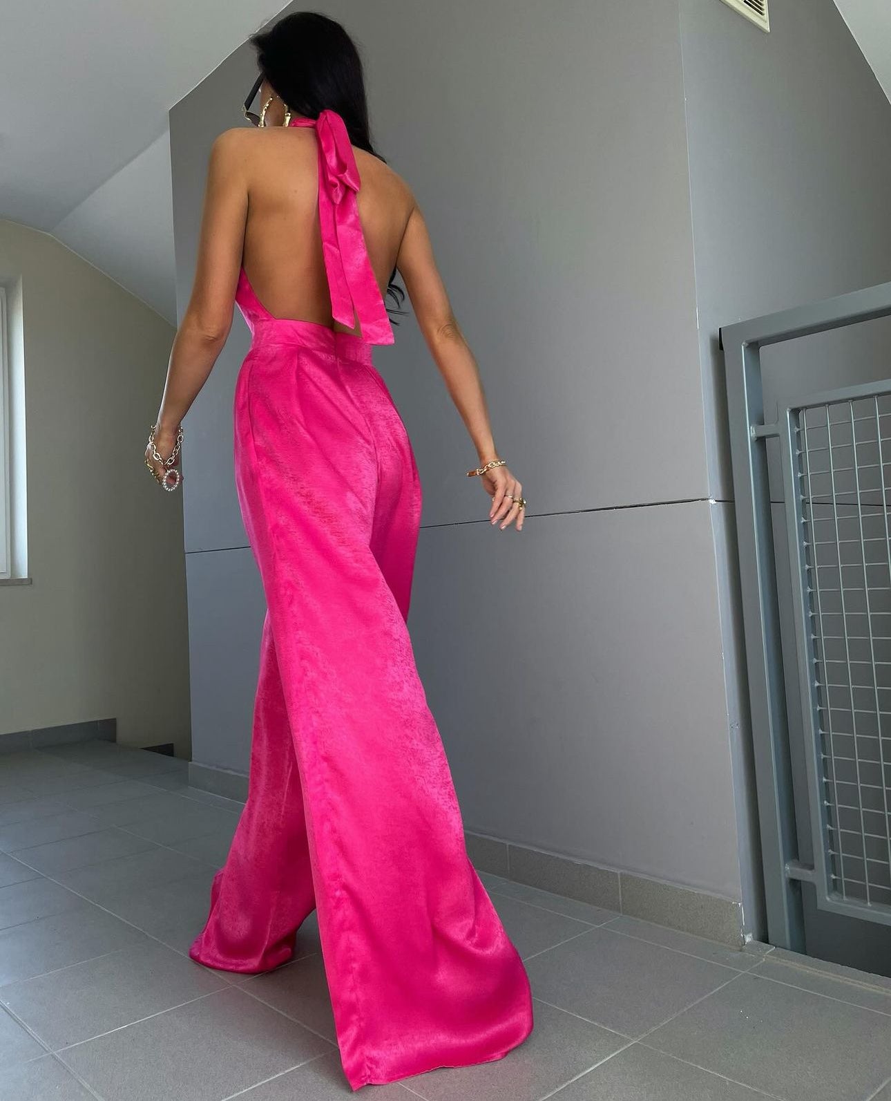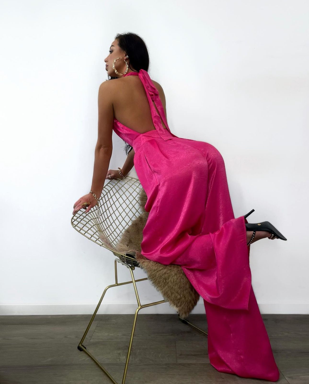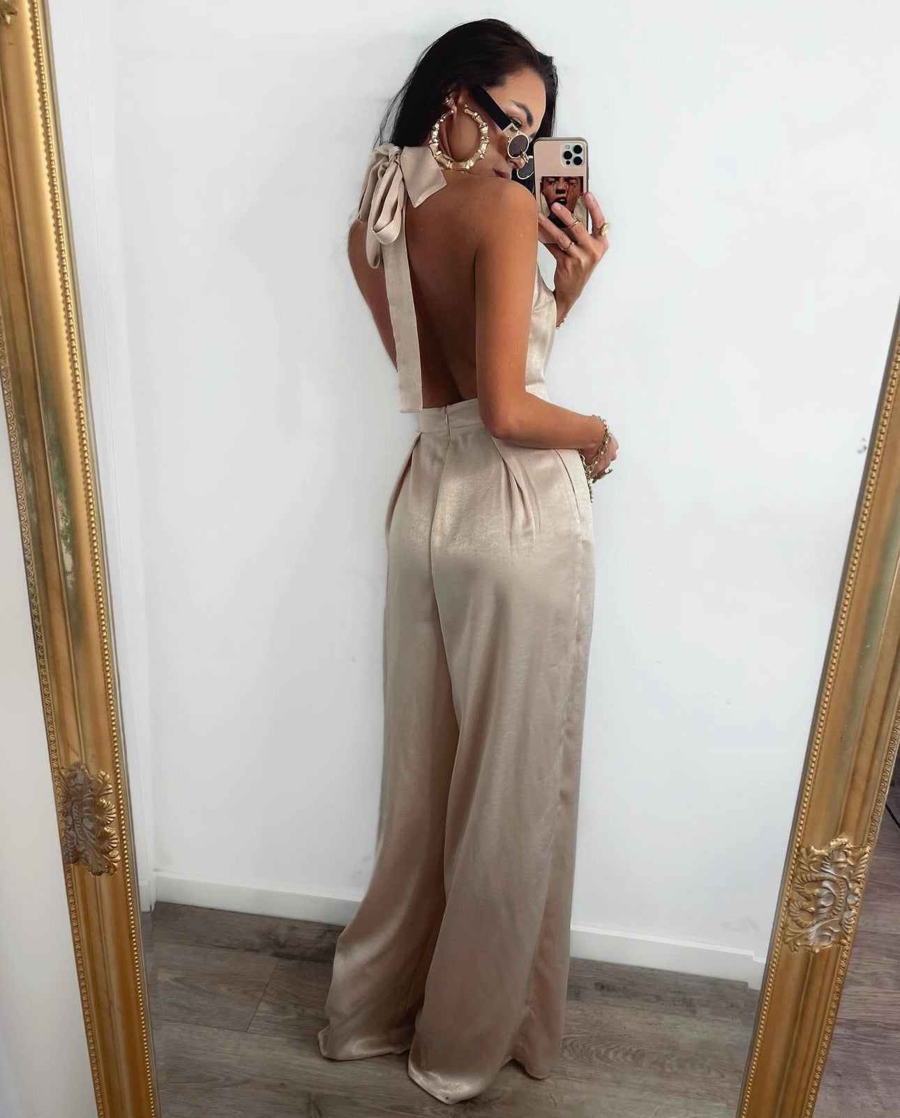 Questa tuta allacciatura multi modi è realizzata in raso, conferendo al capo un elegante aspetto. Grazie alla sua versatilità, potrai indossarla in diversi modi, permettendoti di creare un look unico e sofisticato per ogni occasione.