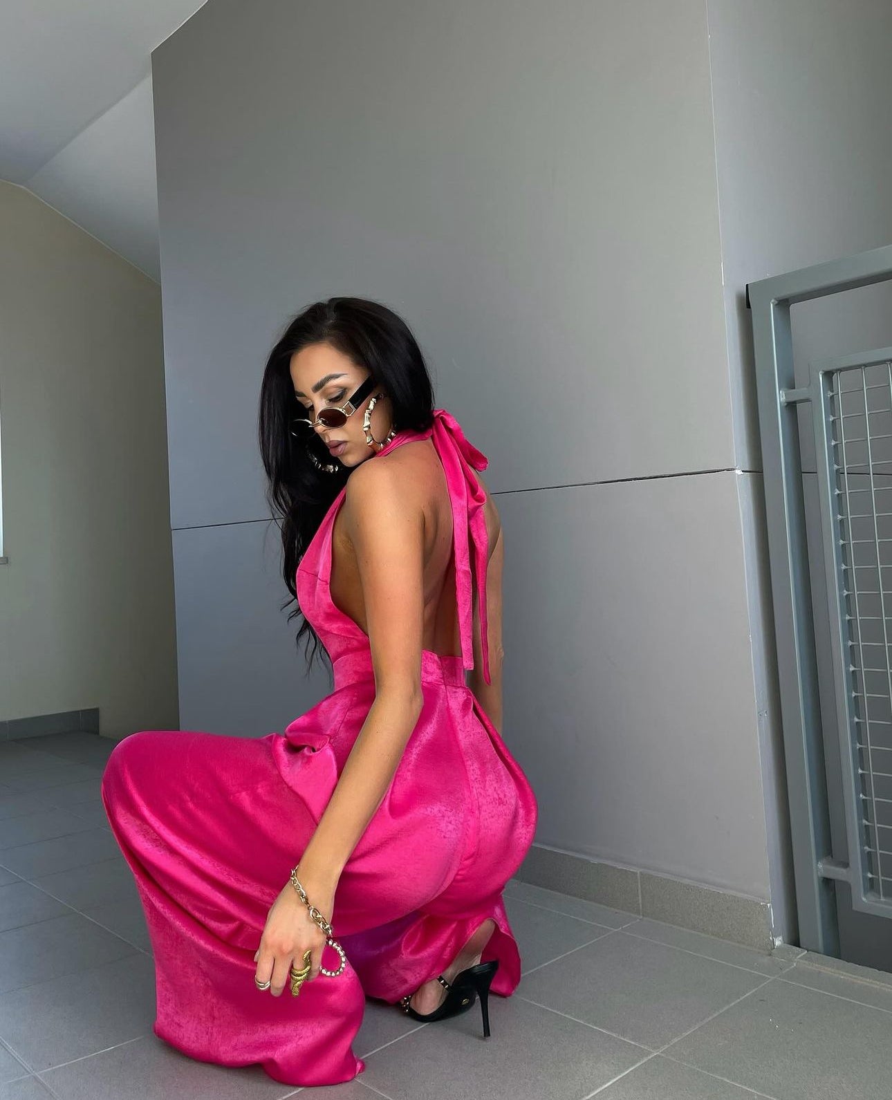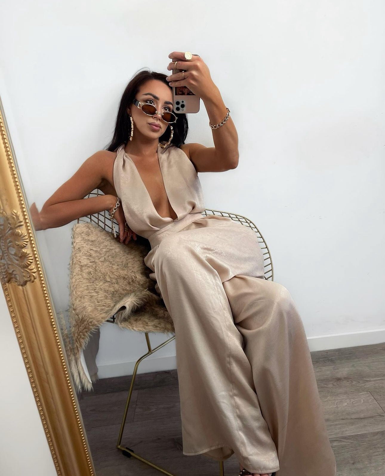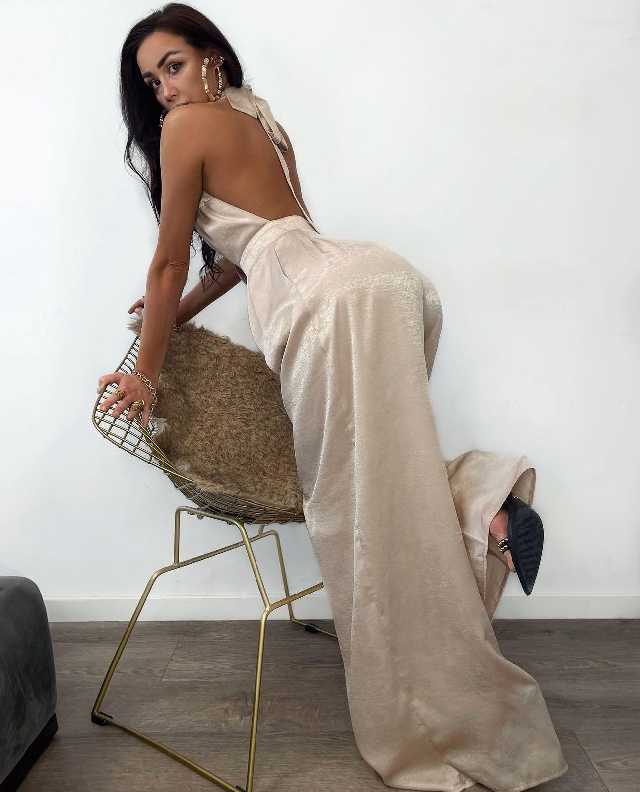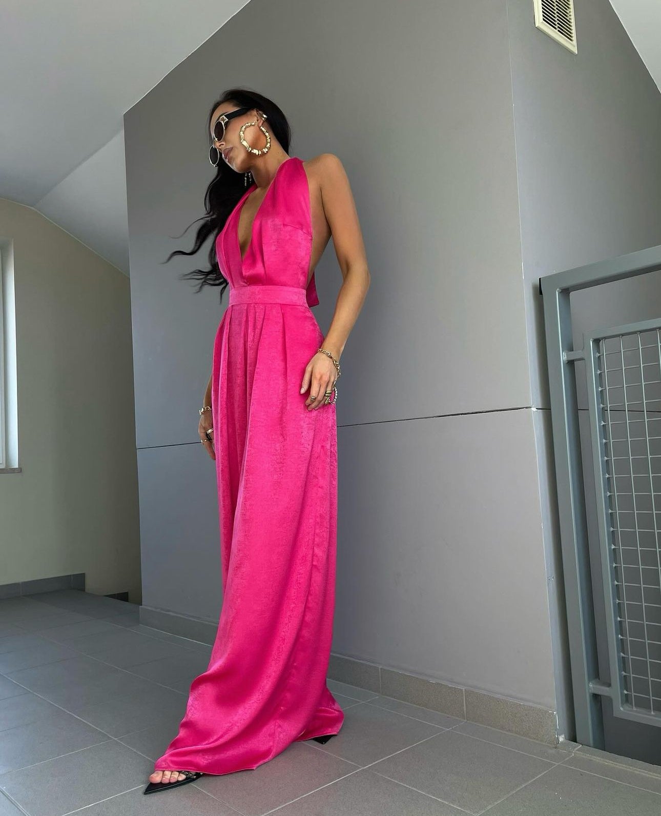 Questa tuta allacciatura multi modi è realizzata in raso, conferendo al capo un elegante aspetto. Grazie alla sua versatilità, potrai indossarla in diversi modi, permettendoti di creare un look unico e sofisticato per ogni occasione.