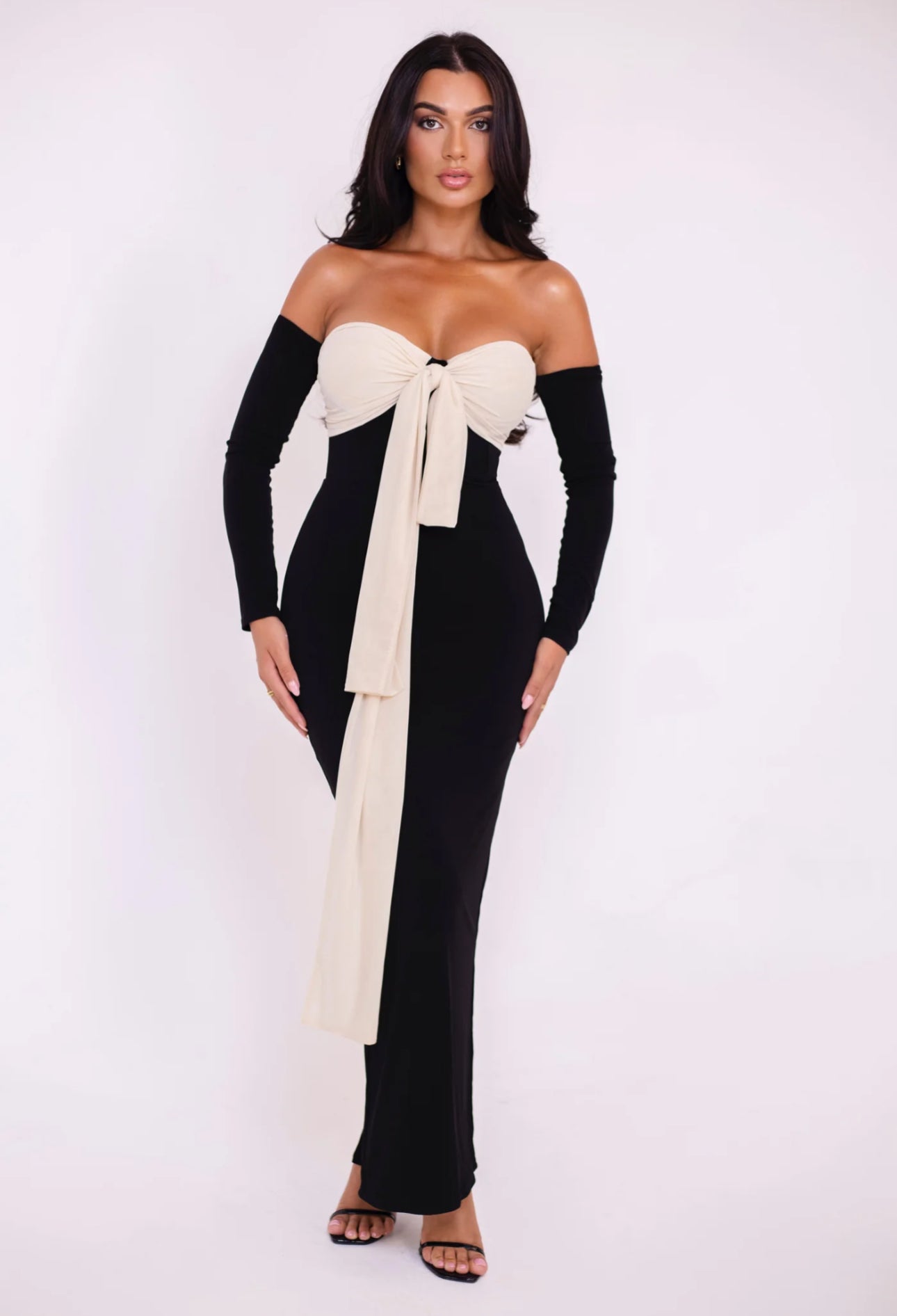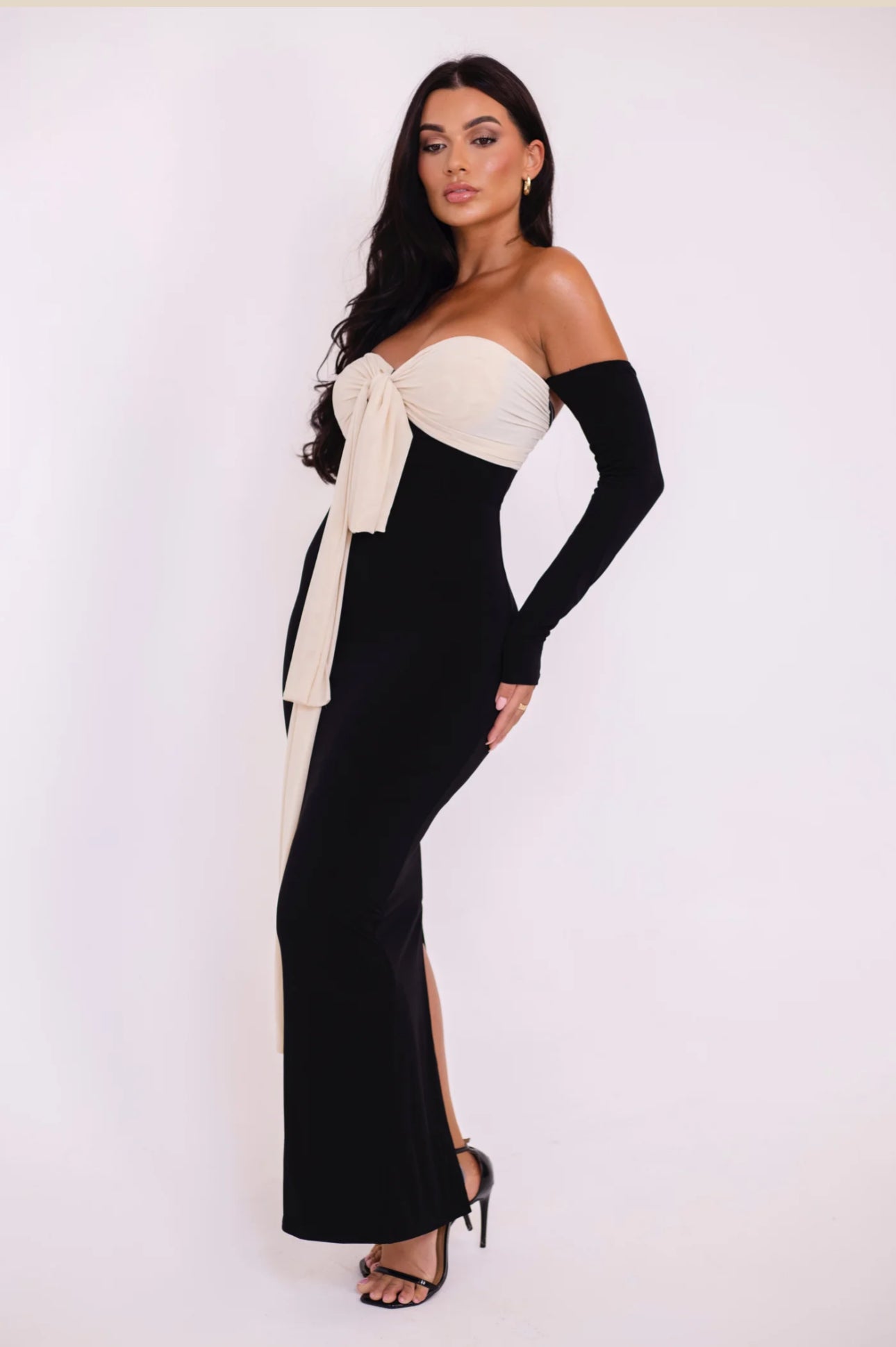 Vestito Angel bicolore modello long dress con guanti rimovibili