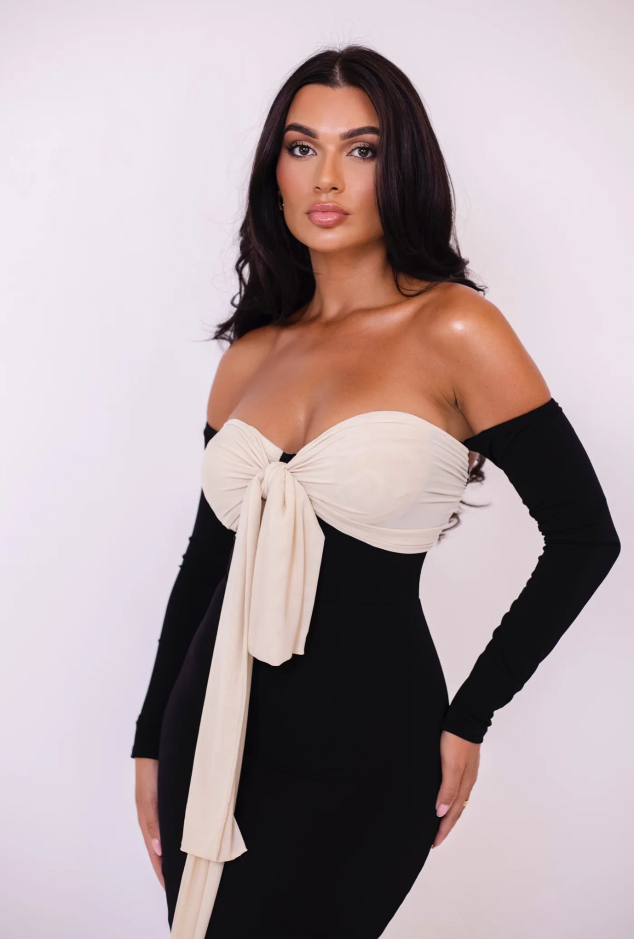 L'abito Angel bicolore è perfetto per ogni occasione. I suoi guanti rimovibili rendono questo look versatile e adattabile a ogni evento. Il suo design elegante e moderno è arricchito da un tocco di classe grazie ai guanti rimovibili. Indossalo e sarai sicuramente un angelo della moda!