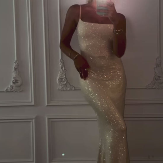 Vestito Sharon è l'abito lungo perfetto per le tue serate speciali. Con le sue paillettes scintillanti e le bretelle sottili regolabili, ti farà risplendere e sentire a tuo agio