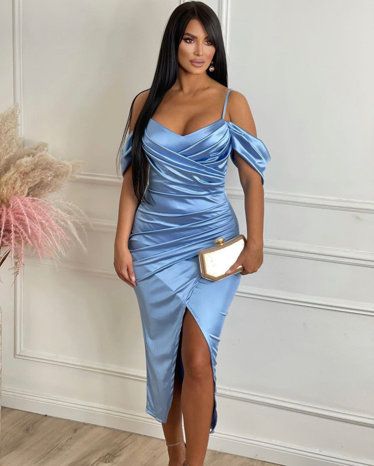 Questo elegante vestito da cerimonia è perfetto per ogni occasione speciale. Con il suo taglio a tubino e le bretelle e spalline in raso, dona un look sofisticato e raffinato. Sarà sicuramente il centro dell'attenzione e ti farà sentire al tuo meglio in qualsiasi evento. Tessuto di alta qualità e design impeccabile.